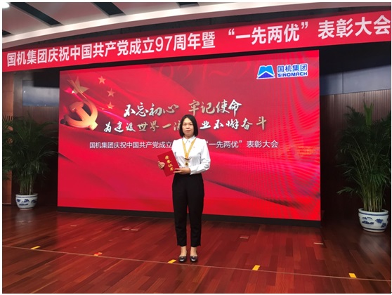 6月30日,中共中國機械工業集團有限公司委員會召開慶祝中國共產黨成立97周年暨“一先兩優”表彰大會。CMIC黨委第一黨支部王玲同志經嚴格選拔,榮獲2016-2017年度國機集團優秀共產黨員稱號。